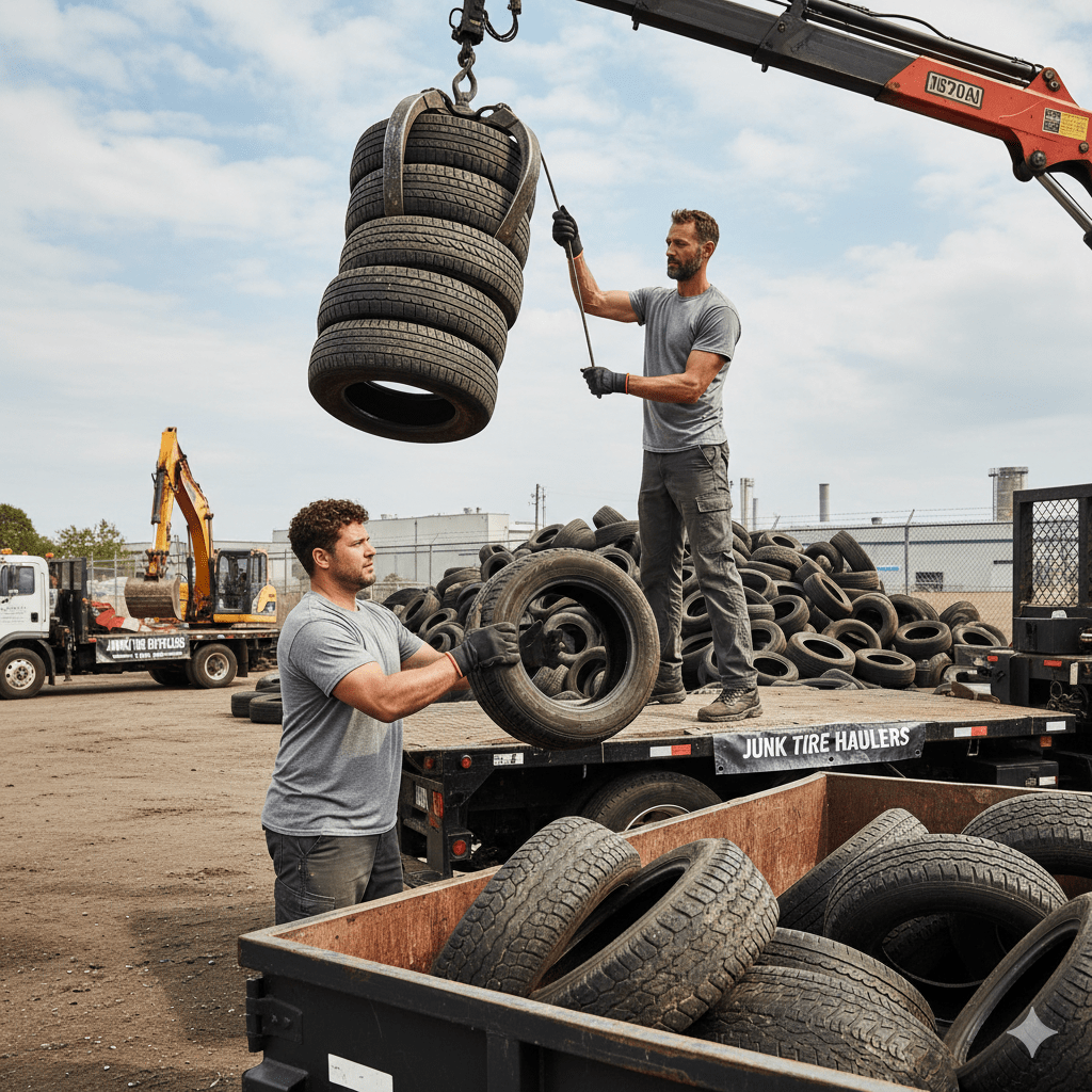 - Shop cleanouts: scheduled pickups for tire retailers and fleets, with cages or roll-offs placed on site.